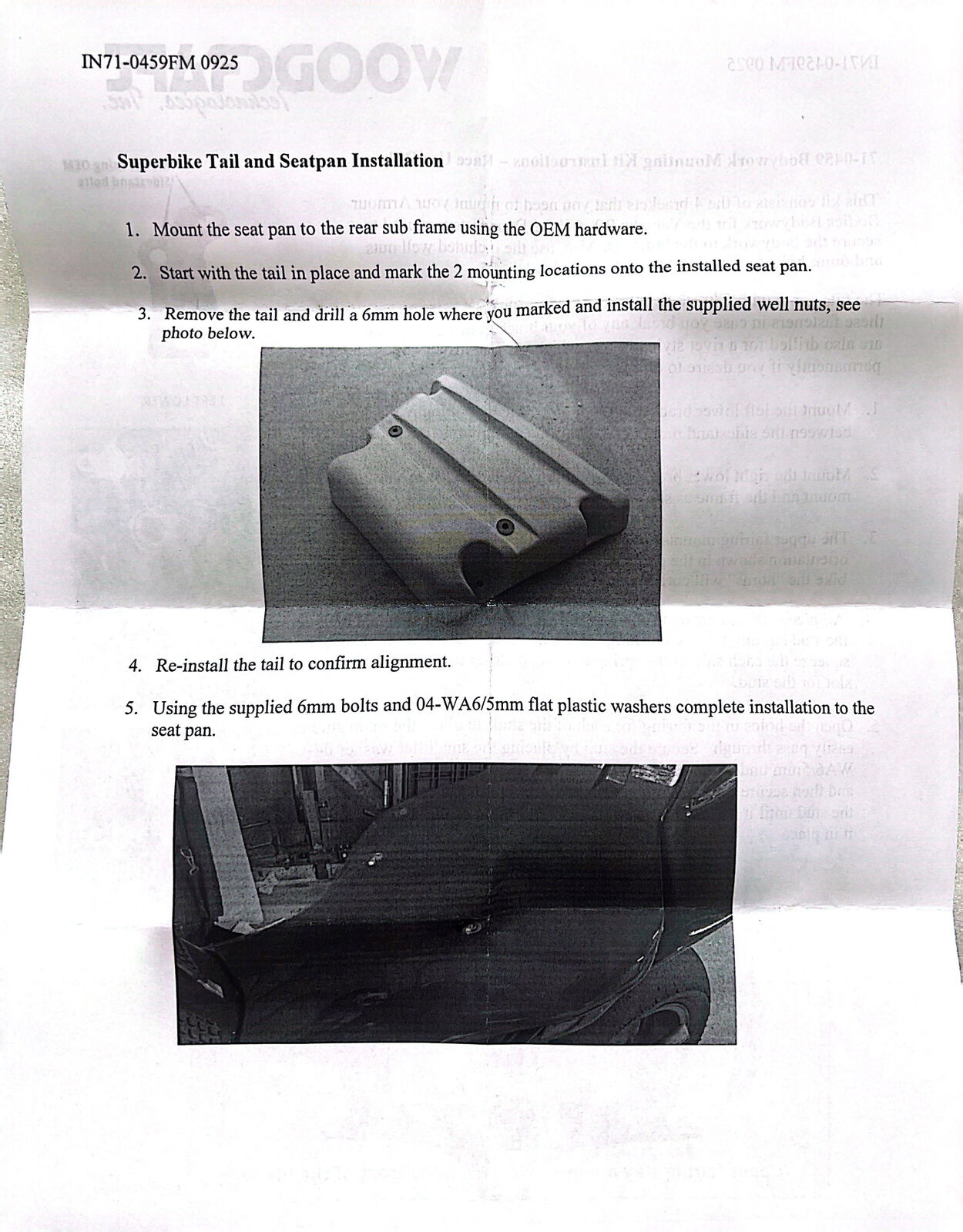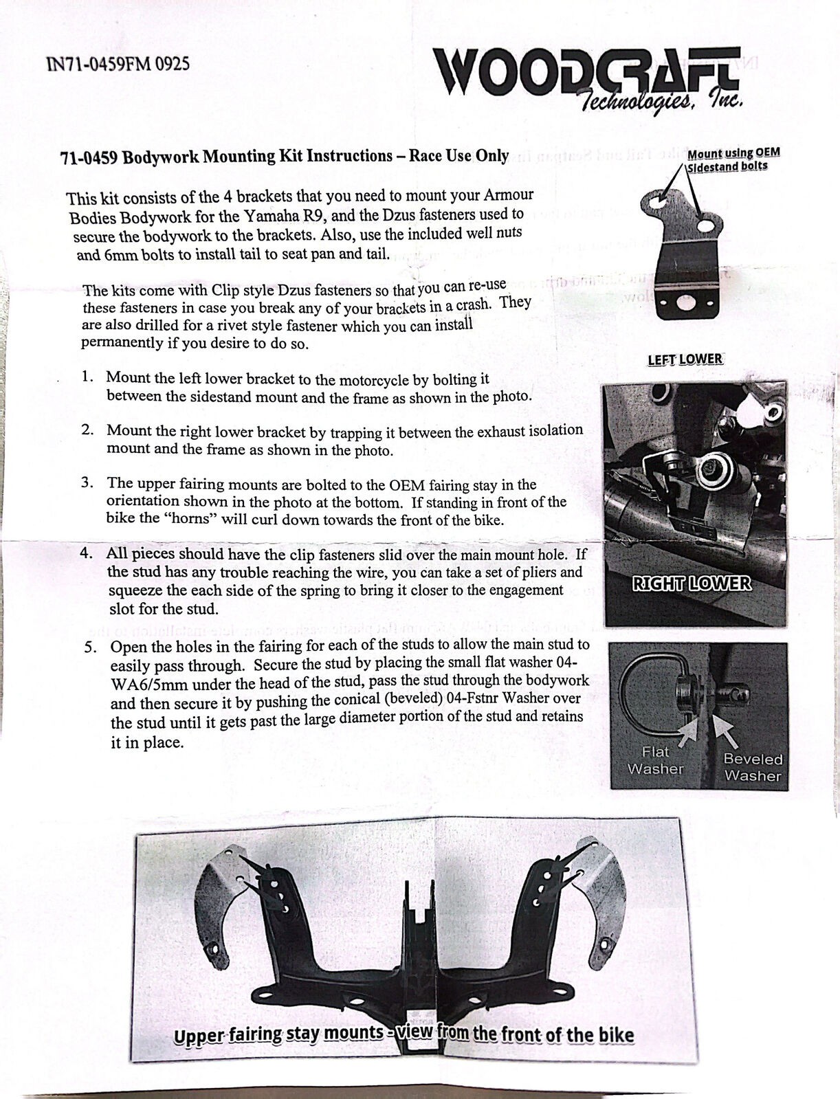 Pics of the Bodywork Mounting Kit and instructions for fitting can be found in the images above.